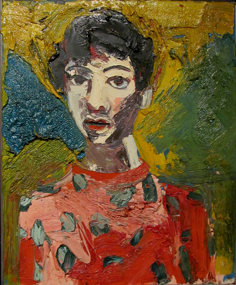This sweet, colorful portrait almost looks like the face of a child or a young woman--but it's actually an image of Joan Brown's mother-in-law, Guadalupe.