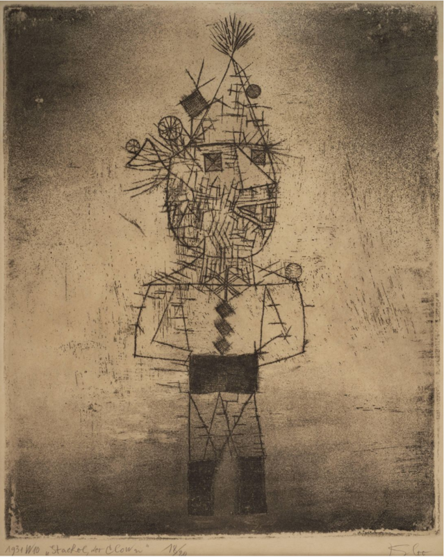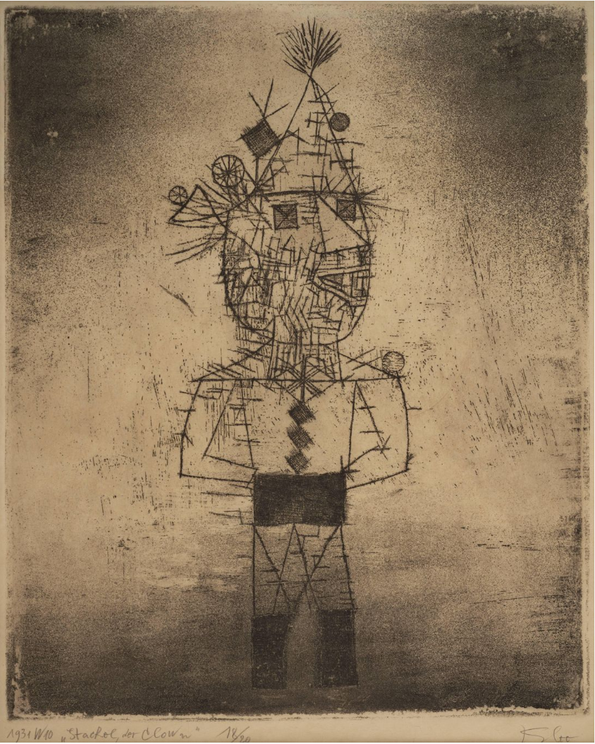 This etching is just one example of Paul Klee’s imaginative renderings of already creepy things in even creepier situations. Throughout his career, Klee appears to be driven by the idea of play and entertainment, creating puppets, masks and drawings that reflect a fascination with the theater, opera and circus. Ultimately, Klee had a slight Peter Pan complex, his art driven by a fascination with the idea of shifting and transformative identities apparent in children’s play. In fact, many of Klee’s toys and etchings were made for his son but honestly, if his son didn’t fear clowns before, the likes of Prickle may well have launched him into that phobia.