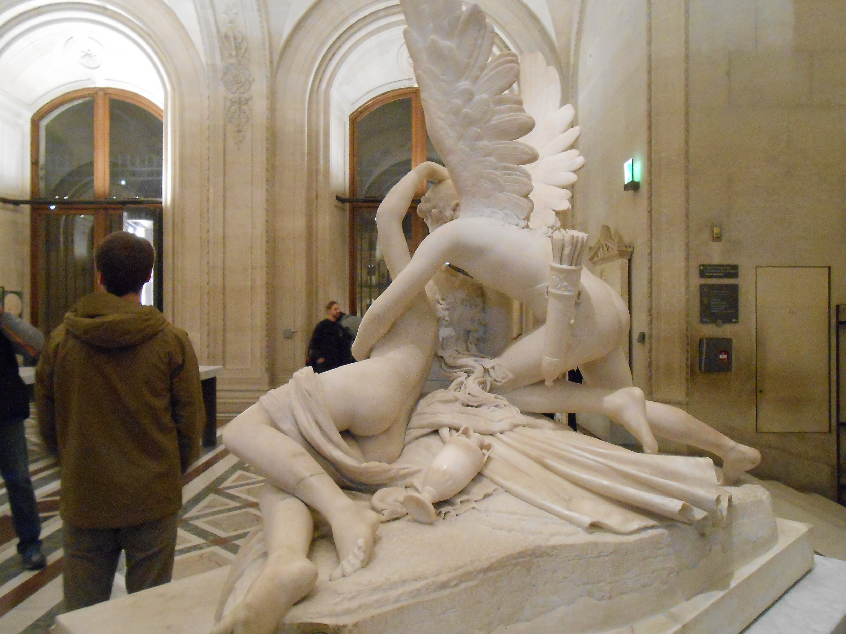 Upon his first glimpse, the French novelist Flaubert proclaimed that he kissed, "the armpit of the swooning woman stretching out her long marble arms to Cupid. And then the foot! The head! Her face! Forgive me,” he stated, “but it was my first sensual kiss for so long; indeed it was something more; I was kissing beauty itself." I guess there weren't any museum guards back then to prohibit visitors getting handsy with the art. In any case, Flaubert wasn’t alone in his passionate reaction to this sculpture―witnessing the two lovebirds in the throes of romantic ecstasy is enough to make any self-respecting bystander eager to slide into first base for a little ménage à trois.
