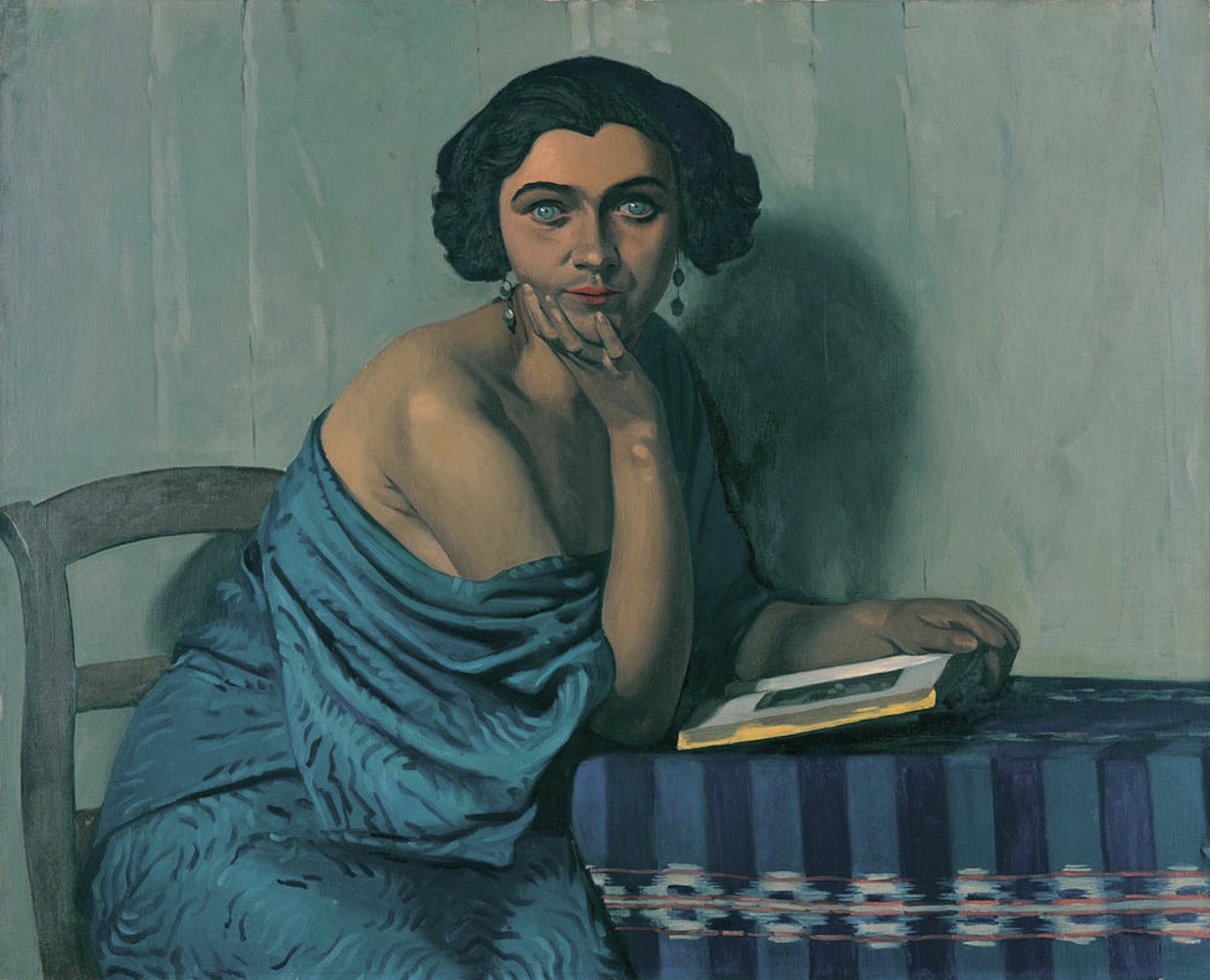 There may not be a physical ocean but her gorgeous deep blue eyes are perfectly matched to the silky dress that is treatening to fall off her other shoulder. Luckily, Vallotton was part of a group of painters who only painted naked ladies when it made sense. This would've been a gratuitous nip-slip with Eugéne Delacroix or Guido Reni for sure.
