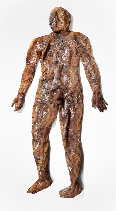 It probably wasn’t so comfortable for the artist to cast himself to create this sculptural work (well, technically it’s a piece of performance ephemera, but now it exists as a sculpture - semantics, you know). It is a polyurethane cast of the artist’s body, painted with messy Chinese characters, and stuffed with paper in the hands, head, and feet (and luckily nowhere else).