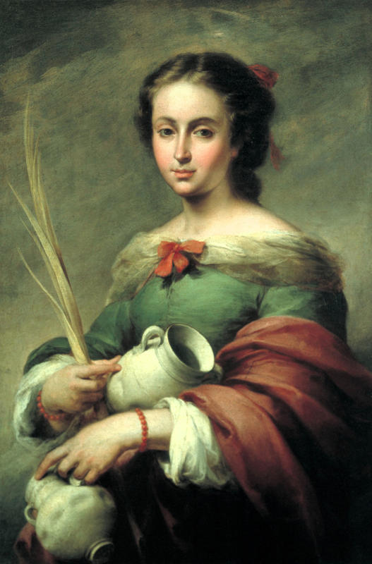 The palm frond in Rufina's hand is symbol of martyrdom, which by the sound of it she more than earned.