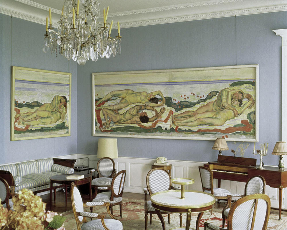 The final resting place of these paintings by Ferdinand Hodler, the famous Swiss artist, wasn’t an obvious choice. It seems a lot more like a place where ladies would play bridge and drink tea after steaming in the sauna rather than a place where an erotic piece of art would hang. Bridge and naked, floating people go together about as well as a fish and a bicycle. Unless the elite bridge clubs of America are a lot cooler than we think they are. You really never know what those rich folks get up to behind closed doors...