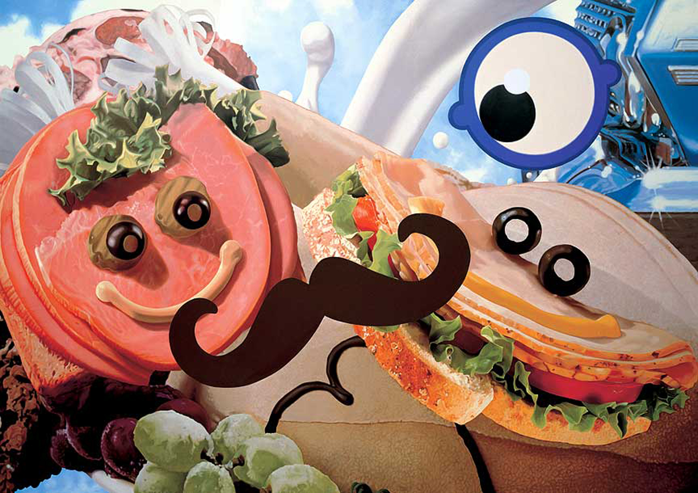 The critics love to hate it, but the public can’t seem to get enough. His overwhelming success is thus a bit of an enigma. So "hey", he thinks…"why not sandwiches?" In his Easyfun-Ethereal series, Koons decides to take ordinary lunch fare to epic proportions with this 9 by 14 foot bizarre painting of smiling deli meats.
