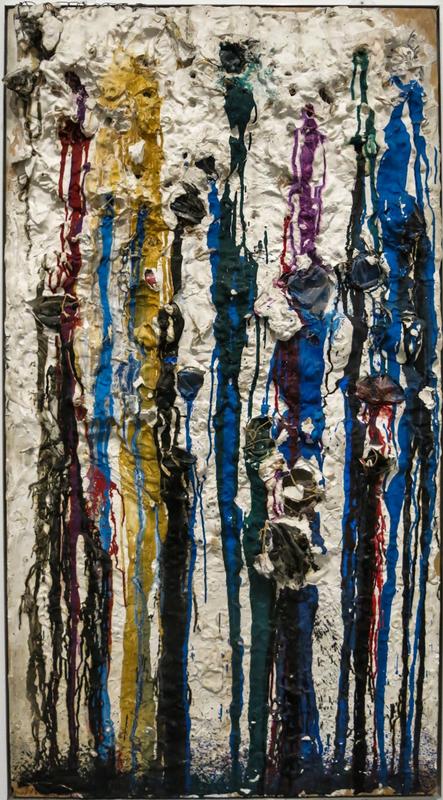 I like this artwork a lot! I love the expression in mixing the mediums of sculpture and painting. I like how both variables help and effect the other. The paint doesn't just effect the sculpture, but the sculpture also effects the paint. Letting the impact of the paint change the surface the paint is on, creates an even more unique drip of the color.
