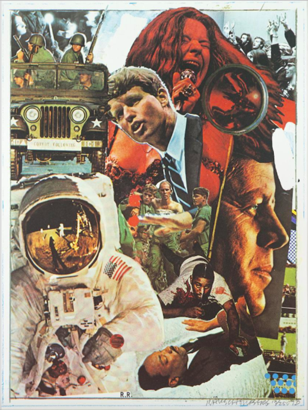 Signs captures the zeitgeist of the transition from the 1960s to the ‘70s in the USA. Rock ‘n Roll, Civil Rights, space travel, political turmoil, and the Vietnam War are all represented through the figures Rauschenberg selected in this portrait. They are layered and emotional, sexy and engaged. Rauschenberg demonstrates a clear knowledge of his contemporary news cycle - he’d likely nail the “headlines quiz” that the New York Times sends out every week in its Morning Briefing.