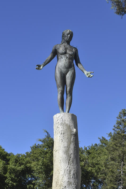 Smith walked around the UCSD campus until she figured out exactly where and how she wanted to mount this lady. She ultimately decided to make a cast of one of the dying eucalyptus trees as a stand, which is cool because it like totally fits into its surroundings, you know? The cast was made so well that you can actually see beetle trails, which was the tree’s ultimate cause of death. Trees die, we die...you get the idea. The sculpture also fits into its surroundings because it serves as a watering hole for all of the little creatures that inhabit UCSD’s campus, which makes this representation of illness peculiarly adorable.