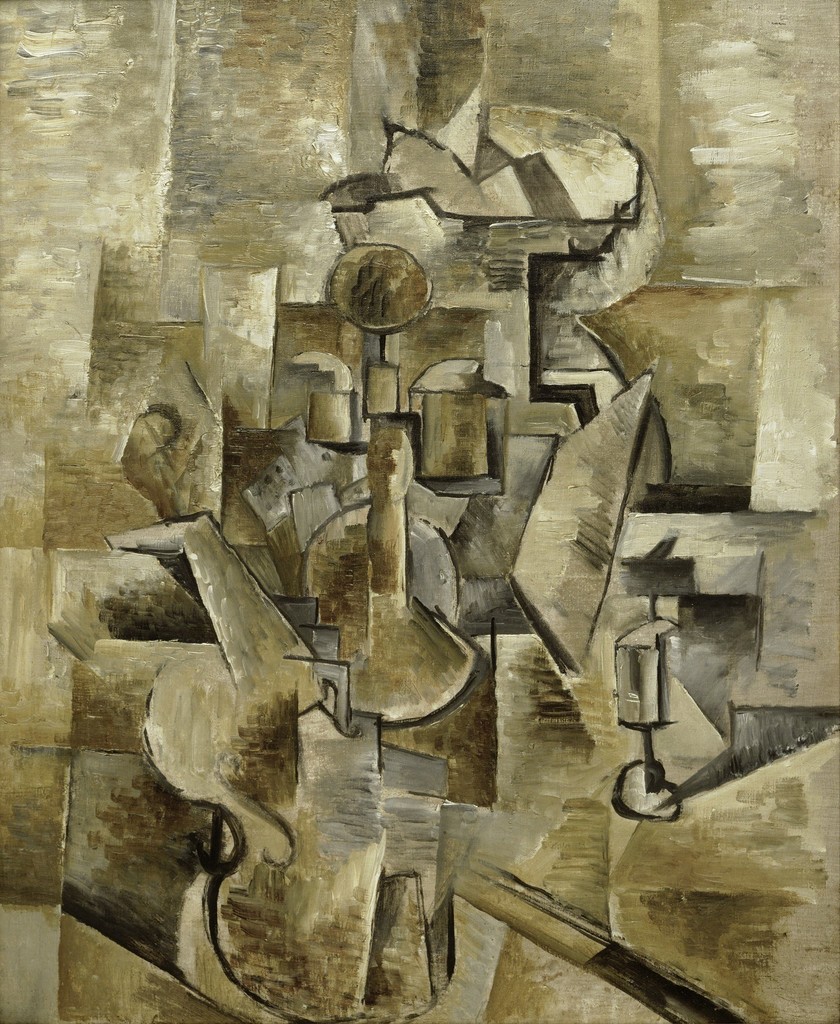 During their stay in Ceret, the two worked extremely closely, to a point where their works were basically one and the same in concept and execution. They both featured violins, fruits, vases, and furniture that was found in their studio extensively in their work. Braque himself was responsible for introducing collage work into his paintings to make his canvases come to life as independent objects in a real space, not just a window into a manufactured world, cementing himself as a more technical artist as opposed to Picasso’s emotive style.