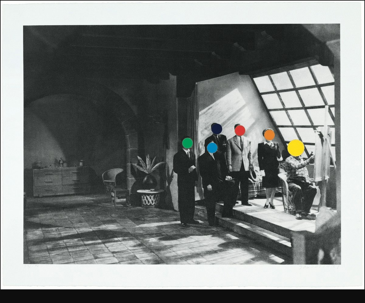 Baldessari explains, “Once I had these figures with their faces obliterated, I could begin to use them like players or actors in a stage play or a movie,” which is pretty chill if you don’t think about the poor people who are having their faces “obliterated.”