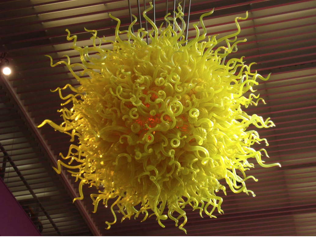 Unlike his usually vague titles, Sunburst is quite specific. No one can deny that Chihuly created a miniature sun, complete with over a thousand solar flares reaching out into the entrance of the museum, beckoning – or maybe pausing – visitors on their way inside. And let’s be honest, blowing air through a metal tube into molten blobs, forming beautifully curling strings of yellow glass, is about as close to facing and mastering the heat of the sun as I can imagine.