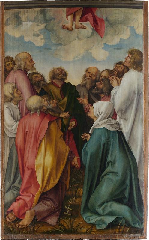 Kulmbach’s rendition of the biblical scene seems a little...cramped. He managed to fit all twelve apostles and the Virgin Mary into this small canvas, but only shows Jesus’ feet as he ascends to Heaven? How rude. We now know that this painting is so narrow because it was one of eight that constituted an altarpiece illustrating the Virgin Mary’s life. This also might explain why this panel emphasizes the apostles and Mary over Jesus, although I like to think that Kulmbach might have found this compositional choice a little funny, too.
