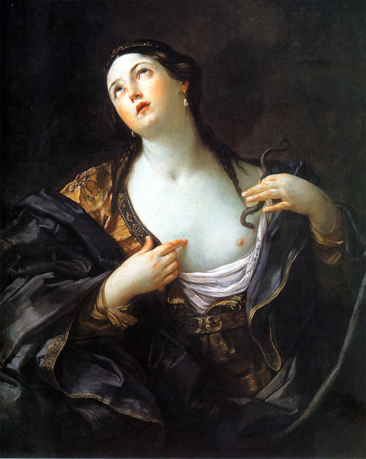 Many Renaissance artists have been influenced by the story of this unforgettable femme fatale. I mean, any woman who has the fortitude to seduce two of the most powerful Roman military leaders to solidify her grip on the Egyptian throne should obviously be admired. As heartless as her actions may seem, history tells us that she was actually deeply in love with Marc Anthony, and upon his death, she took her life as well. Romantic, huh? No wonder Shakespeare revolutionized this tragic love story. Plus, if you're trying to sell plays, a powerful seductress, wardrobe malfunction, and exotic deadly animals are bound to be a hit.