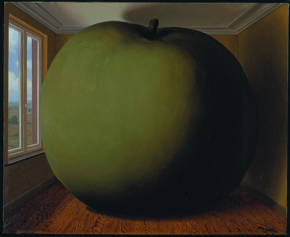This is not the only time that Magritte presented a green apple in his work. Other pieces like The Son of Man, Ceci n'est pas une pomme, Le prêtre marié, The Habit, and The Postcard also feature the artist’s fav fruit. And like the popular kid in school, Magritte made his own interests interesting to other people – people like Paul McCartney and Steve Jobs, who not so coincidentally named their corporations Apple Records and Apple Inc. This is all well and good but it still doesn’t explain why Magritte used the apple and why he made it so freaking big. The artist explains, “Everything we see hides another thing, we always want to see what is hidden by what we see. There is an interest in that which is hidden and which the visible does not show us. This interest can take the form of a quite intense feeling, a sort of conflict, one might say, between the visible that is hidden and the visible that is present.” So now the question is what the heck is behind the apple?! Because Magritte is a Surrealist, it could be literally anything, making our curiosity all the more painful. And after some serious thought on the subject, we realized that maybe the apple isn’t abnormally large after all. Maybe it’s the room that is just really small. Add this to the list of things we’ll never know.