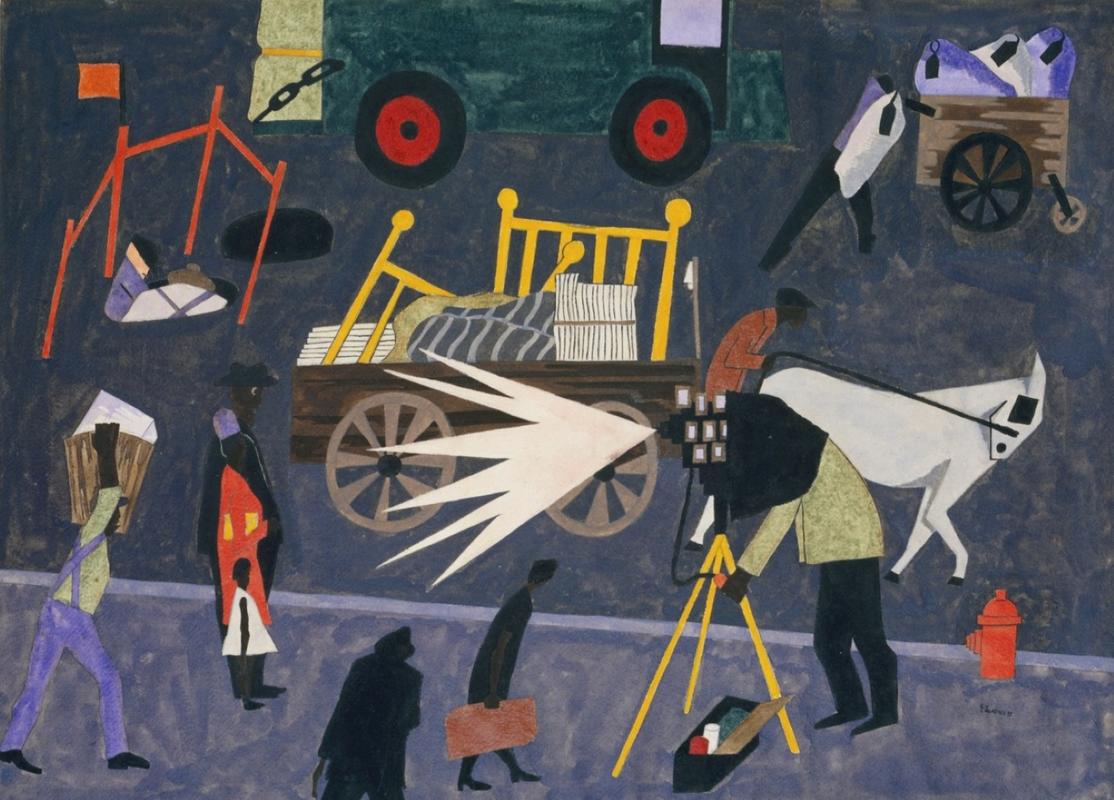 In Jacob Lawrence’s dynamic painting The Photographer, the subjects being captured by the photographer’s lens are actually standing still.