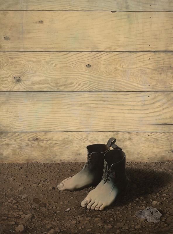 Magritte’s mother drowned herself when he was only 14, and it doesn’t seem too much of a stretch to consider this fact when viewing the Red Model III. Boots, and shoes in general, are the things which weather the highs and lows of an individual's existence, and which can outlive those who possess them as a remnant, a type of record. The fact that the shoes are turning into a human foot might reflect that, once someone passes on, their material possessions become a persistent reflection of who they were. It’s a trace of someone now gone, a ghost.