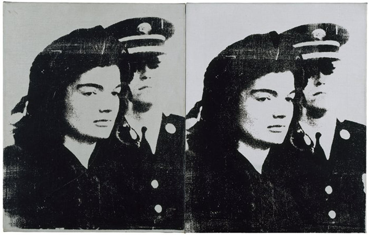 Can’t blame her though, as this silkscreen is from a photograph taken at the funeral of her husband.