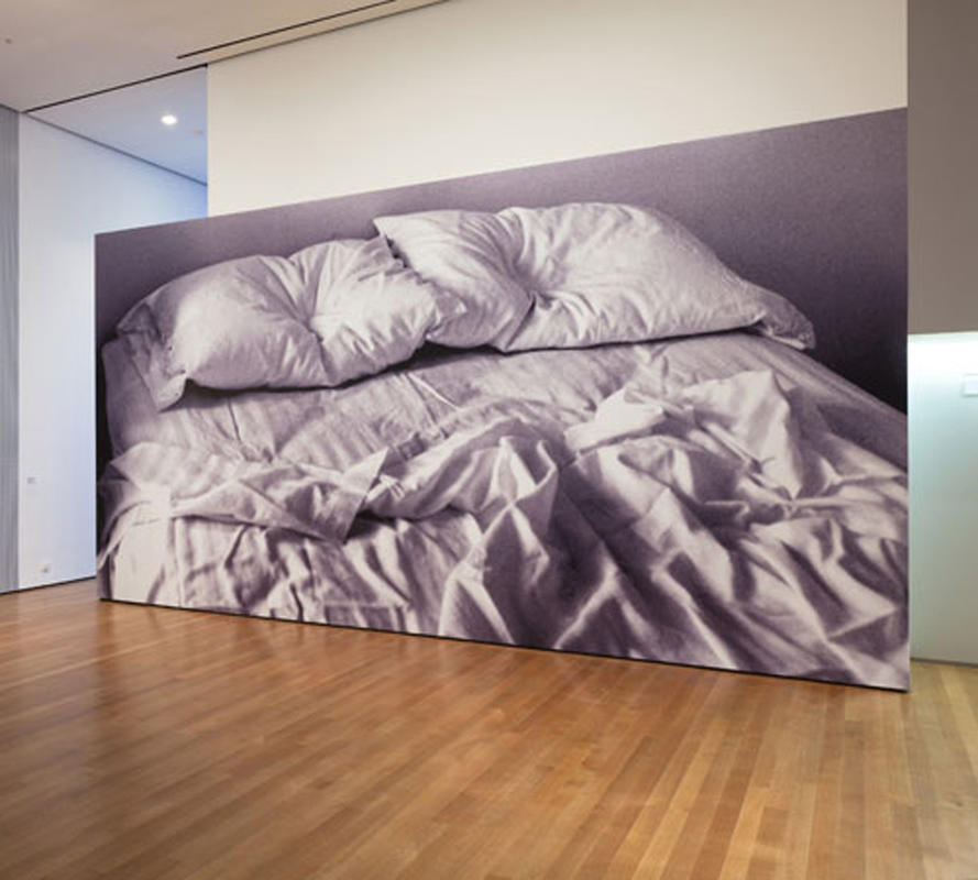 As a member of the homosexual community in the 1980s, Gonzalez-Torres was affected and influenced by the horrors of the AIDS epidemic, and many of his installation works are thought to reference themes of dying and loss.This large photograph shows a slightly unmade bed, the two pillows at the center have indents in them as though the inhabitants were just there. The scene is tranquil, but also unsettling. What happened to the couple?