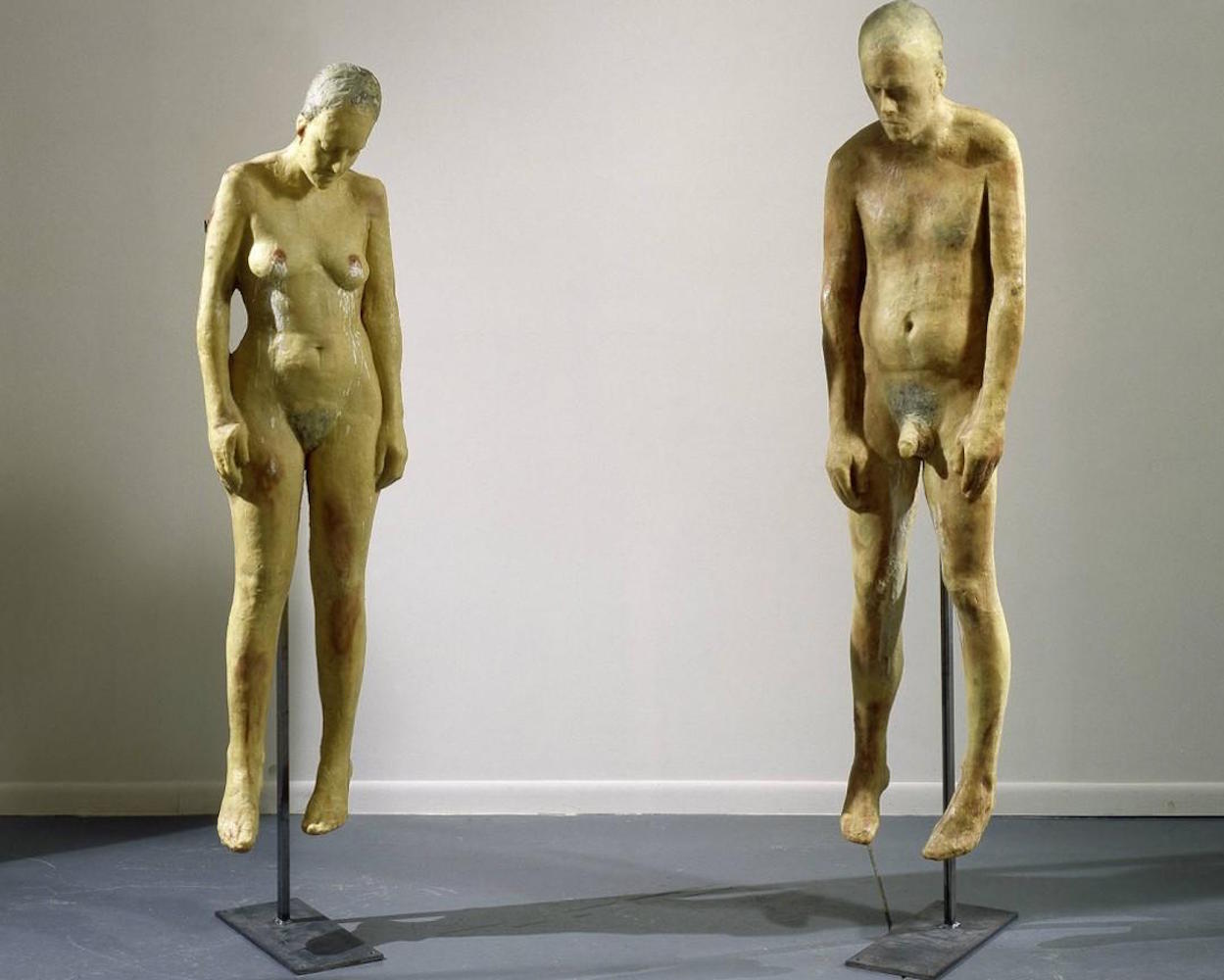Kiki Smith’s ability to make the grossest-looking humans is uncanny. She claims that she uses the body because, "It is our primary vehicle for experiencing our lives...It’s something everyone shares.” But personally I’d rather not share anything with these two. They give the heebie-jeebies to anyone who comes too close. Made of beeswax and microcrystalline wax mounted onto metal stands, Betty and Al (completely made-up names for your reading convenience and because Paul Simon forever) are reminiscent of Adam and Eve post-expulsion from paradise. They hang naked and lifeless from their respective poles and look like they have that newborn baby goo all over them. Betty has milk dripping from her nipples down to her bajingo and Al...well, Al has semen dripping from his penis down his legs. It’s a really embarrassing situation for both of them. What if the children were to walk in? I mean really…won't somebody think of the children?!