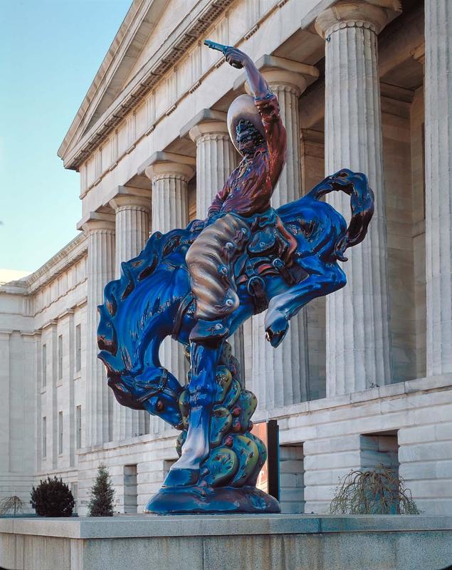 Luis Jimenez’s colorful sculpture, Vaquero, is quite the contrast with the conservative and traditional columns and architecture of the Smithsonian American Art Museum, where it now stands.