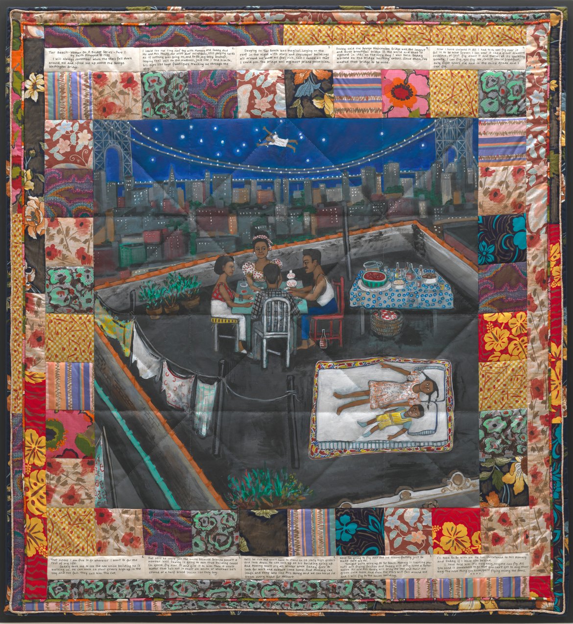 Faith Ringgold’s Tar Beach incorporates traditional painting technique with her signature quilting.