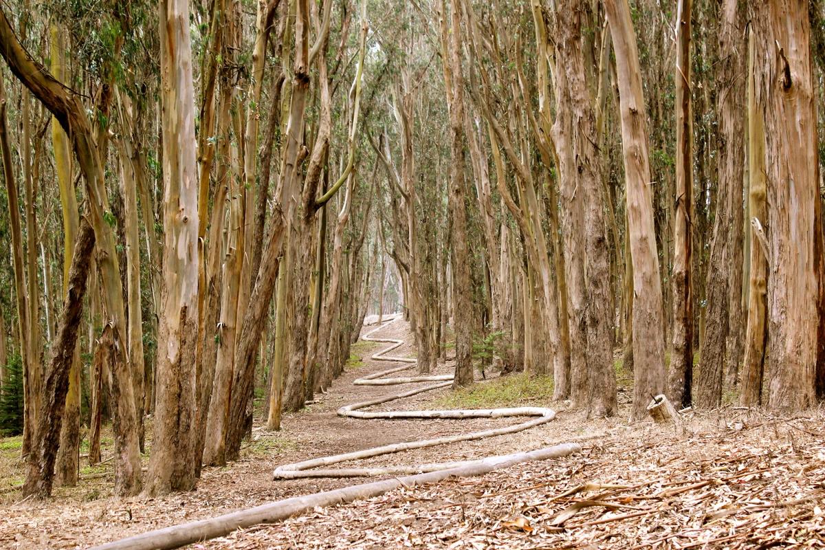 Don't put on the tinfoil hat yet, it's just art by Andy Goldsworthy. He's got a knack for using natural resourcesWood Line is made from the surrounding eucalyptus grove that was planted by the U.S. Army over 100 years ago.