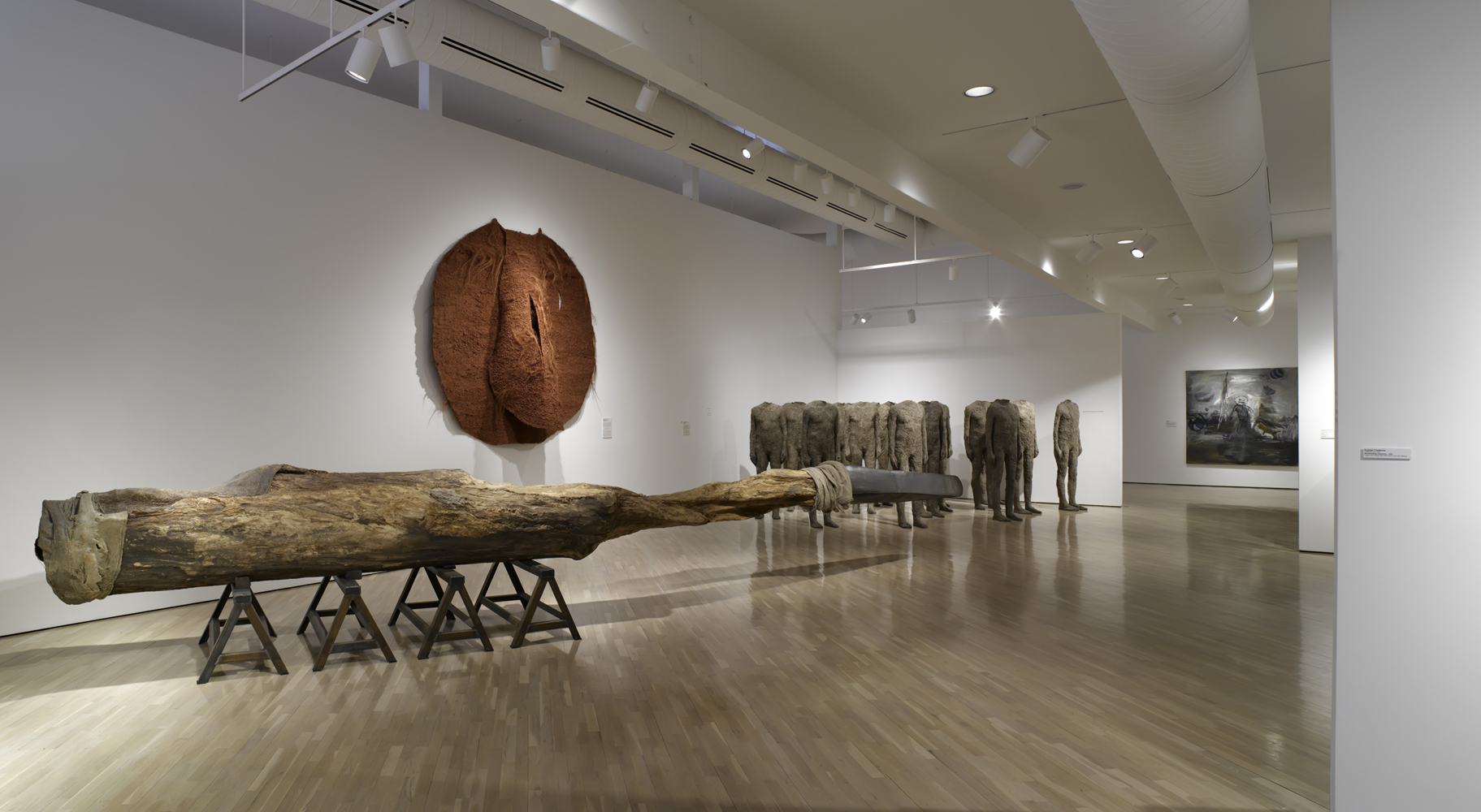 Evocative of a scarred landscape and a wounded body all in one, Zadra is a classic Abakanowicz combination of death and life. She employs the organic material of the fallen tree to evoke the human form and then probes it with steel protrusions to conjure the harsh, man-made weapons of war. And another nice little dichotomy comes into play when you examine the shape and form of the piece. The tree trunk seems to extend beyond it’s own form and begins to bear resemblance to a weapon. Not to mention the obvious phallic form, representing the masculinity of most military endeavors. (Just sayin'.)