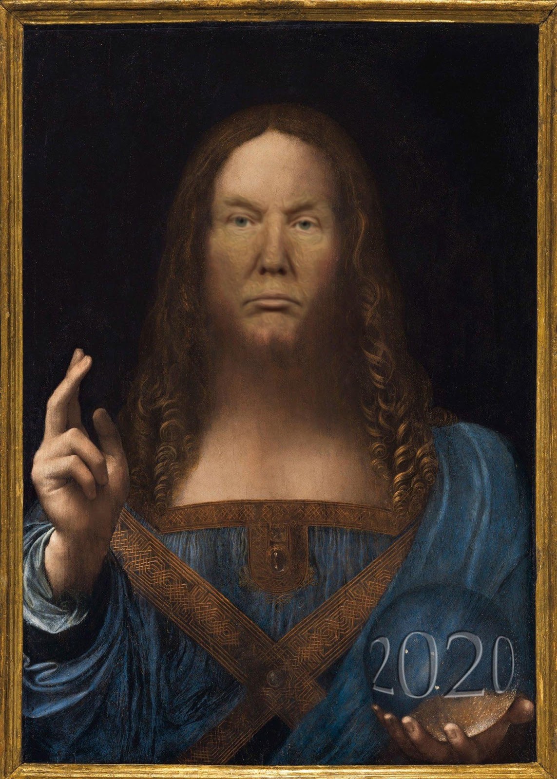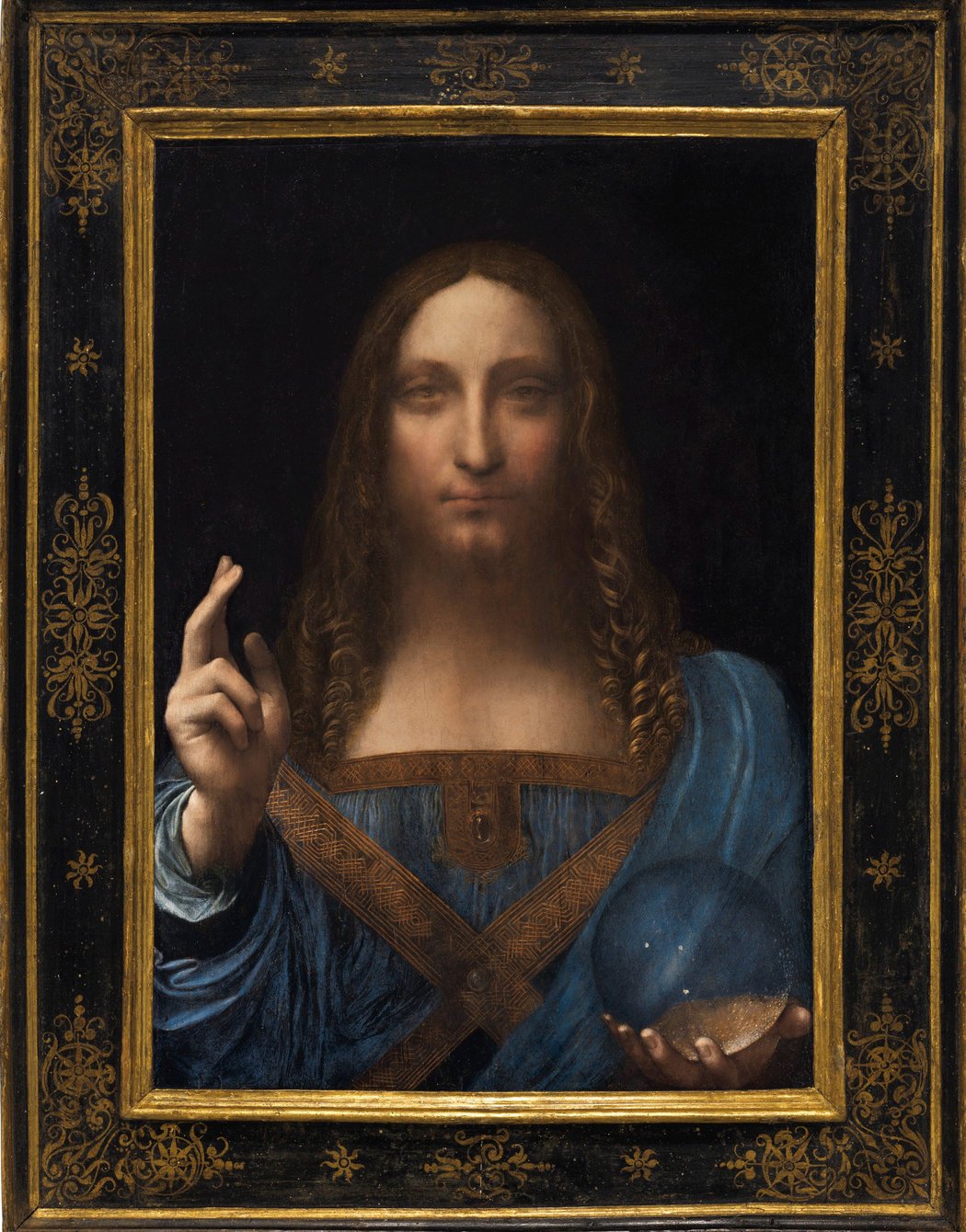 Looks like someone took his advice. Hours before writing this, Leonardo da Vinci’s Salvator Mundi sold at a Christie’s auction for a record-breaking $450.3 million. Touted as “the Last da Vinci” by the international auction house, the painting sold to the highest bidder on the night of November 15, 2017. The other fifteen or so surviving works by the famed Renaissance artist and thinker are housed in museums, and unattainable to private collectors. The masterpiece above was edited by art critic Jerry Saltz, but the actual painting of Jesus holding a crystal orb in his left hand, and raising his right hand in a gesture of blessing, can be seen below: