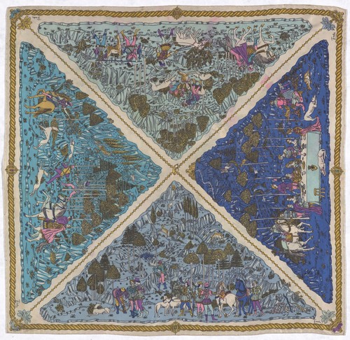 Whether he was inspired by family ties or the work of the artist himself I’m not sure, but Pucci so loved Botticelli that in the 60s he created an entire collection based on his work. Unfortunately many of the pieces are lost to time, but the Indianapolis Museum of Art happens to have a scarf called “La Caccia” or “The Chase” based on Botticelli’s disturbing Story of Nastagio degli Onesti.