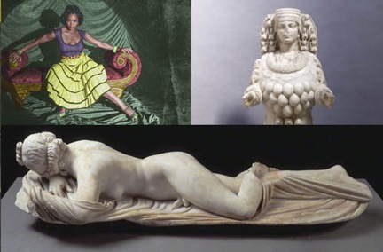 Angela Bassett as Desiree Dupree (top left), Ephesian Artemis at the Museum Of Ephesus (top right), and The Sleeping Hermaproditos by Gian Lorenzo Bernini at the Museé du Louvre (bottom)