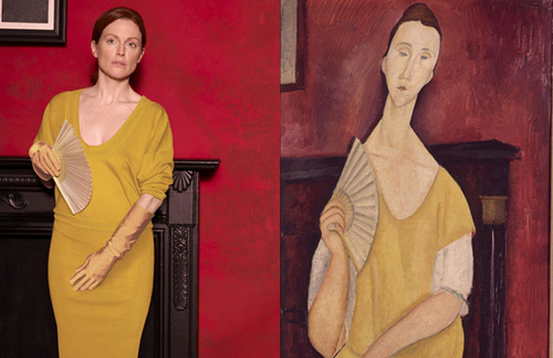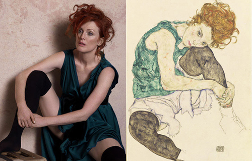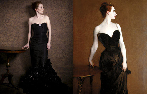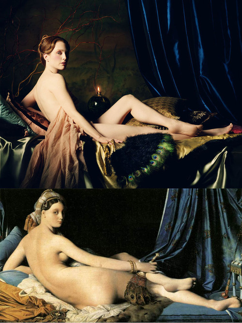 Next we have Jessica Chastain, fellow Academy Award nominee and redhead, with a neat photo shoot of her own. See our other postx with Naomi Campbell and Paul Gauguin and Nicole Kidman recreating famous John Singer Sargent paintings.