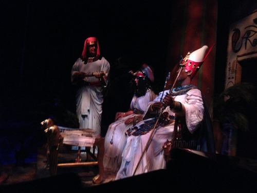 Fun fact: Disney is a huge fan of recycling so they borrowed the already molded faces from the Hall of Presidents to make many of the male characters here. The guy standing up here is President William Taft dressed as an Egyptian scholar!