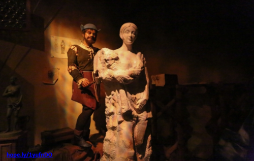 We first spot artists in the Renaissance. We aren’t told who this particular artist is and I don’t recognize the statue, but Michelangelo is the best sculptor of the bunch so we can pretend it’s him!