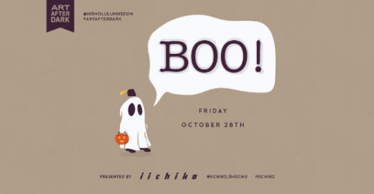 As the hippest museum in Hawaii it is no surprise that they also host the dopest ARTafterDARK events for literally thousands of miles. This year’s Halloween event Boo! promises to be no exception and has the added bonus of featuring giveaways and a social media takeover by yours truly.