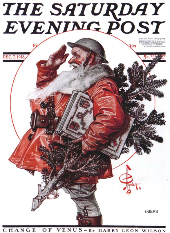 This is a painting done by JC Leyendecker, who along with Norman Rockwell, defined the early modern representation of Santa Claus through their covers for the Saturday Evening Post. This painting is also significant in that it predates Coca-Cola’s use of Santa Claus as a marketing tool by at least two years.
