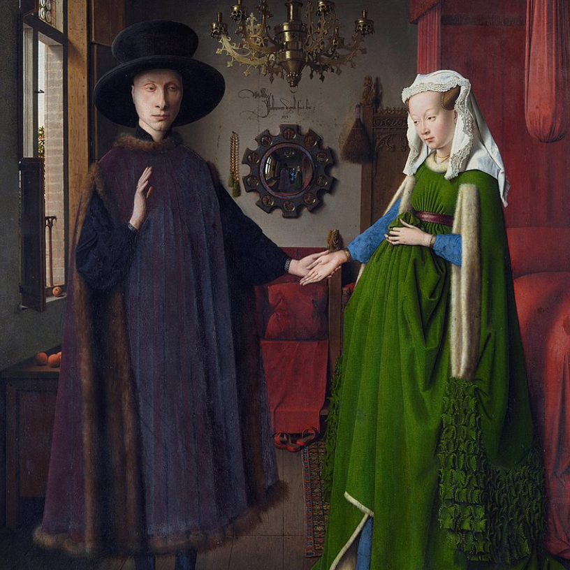 Detail from The Arnolfini Portrait by Jan van Eyck, 1434, National Gallery London.