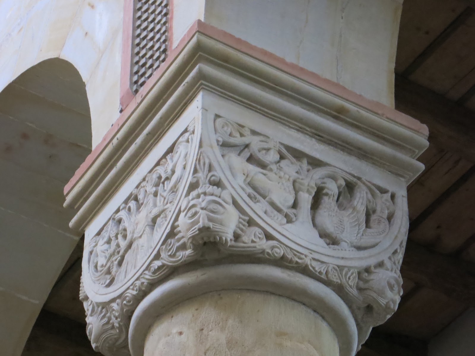 Corresponding to the Yggdrasil was the Saxon Irminsul, the legendary tree that Charlemagne destroyed in his forced conversion of this tribe. It lived on like the Yggdrasil as a Tree of Life, for example in the 12th-C. capitals of the monastery at Hamersleben and other places, splicing together, as art has always done, the elements of various religious and artistic traditions.