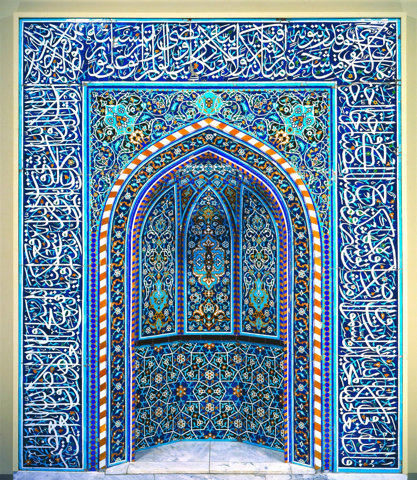 In Islam, it was a common feature of the mihrab or prayer niche, for example in this 16th-C. mihrab from Isfahan in Iran:
