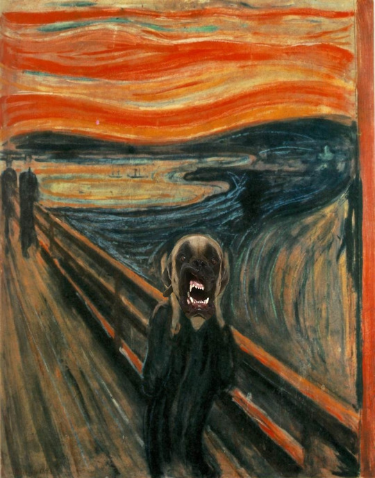 What happens when you face swap this aggressively sneezing dog onto The Scream by Edvard Munch (at the National Museum of Art, Architecture and Design, Oslo)?