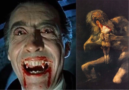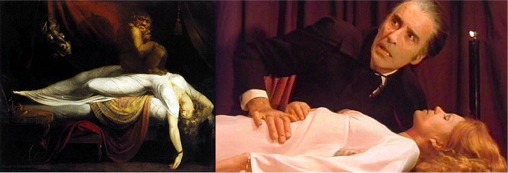The Nightmare by Henry Fuseli in the Detroit Institute of Arts (left), Christopher Lee in Dracula (right).