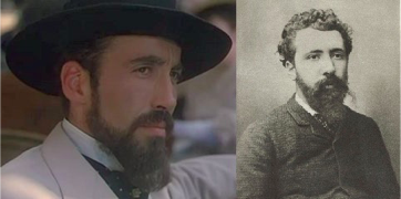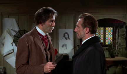 Postman Joseph Roulin by Vincent van Gogh in the Museum of Fine Arts Boston (left), Christopher Lee in Dark Shadows (right).