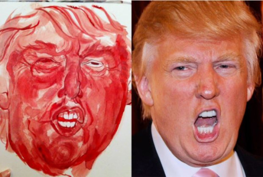 Portrait of Donald Trump in menstrual blood by Sarah Levy.