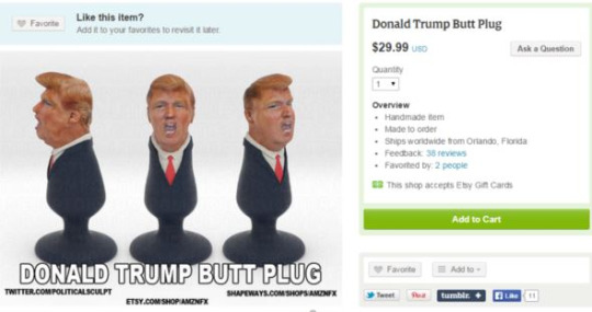 Sale page for Donald Trump Butt Plug by Fernando Sosa.