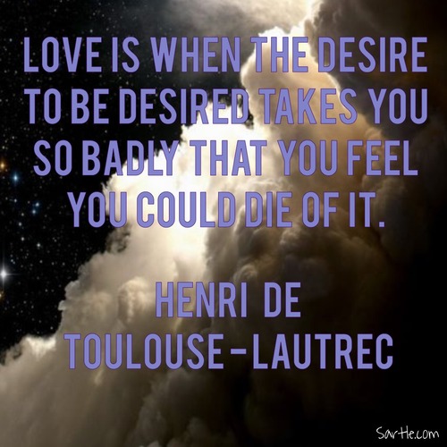 Love is when the desire to be desired takes you so badly that you feel you could die of it. - Henri de Toulouse-Lautrec