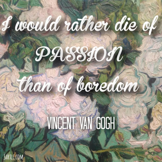 I would rather die of passion than of boredom. - Vincent van Gogh