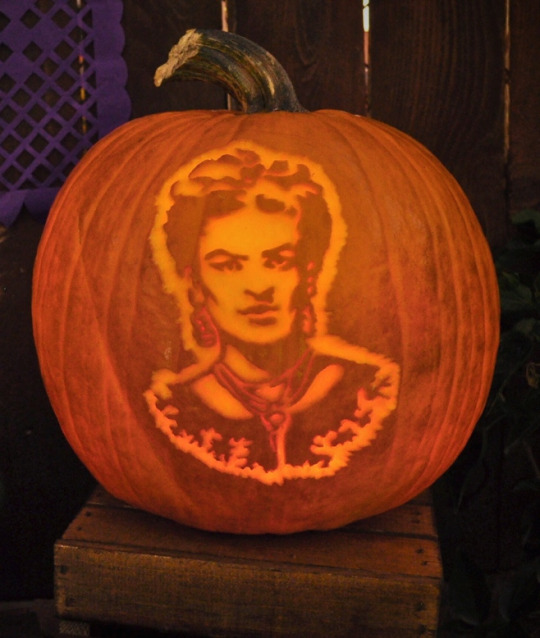 Turns out Frida Kahlo’s iconic self-portraits extend to all mediums– medium sized PUMPKINS, that is.