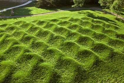 She uses the word "regurgitate" to introduce us to her process of making Storm King Wavefield, the third in the wavefield cycle, which uses nonlinear dynamics, a subfield of math, or maths, if you're British, to create fifteen to eighteen-foot high waves of earth and grass over the surface of an eleven-acre space.