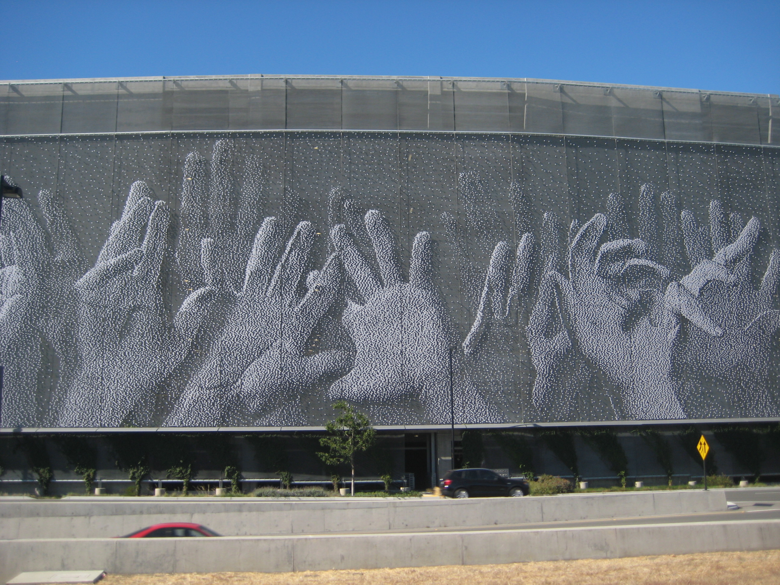 “Hands” by Christian Moeller lends some culture to the parking structure at the San Jose Airport.
