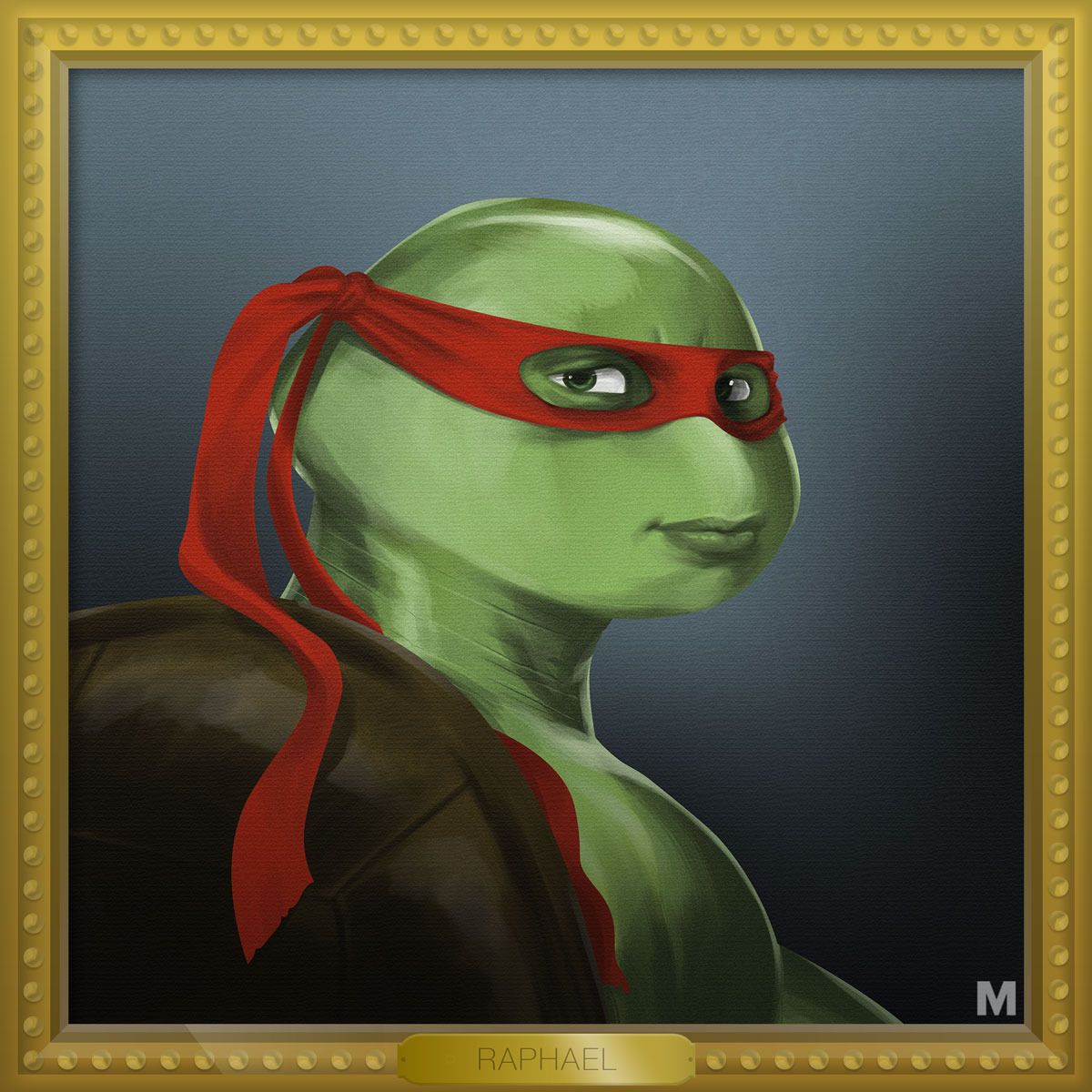 Our favorite bad boy Raphael is painted in the style of Raffaelo Sanzio da Urbino, an Italian artist who was a bit of a miscreant himself. He died at the age of 37 from some sort of sex-related fever. Not crazy about this one, as it gives him the same weird human lips he has in the 2014 movie…