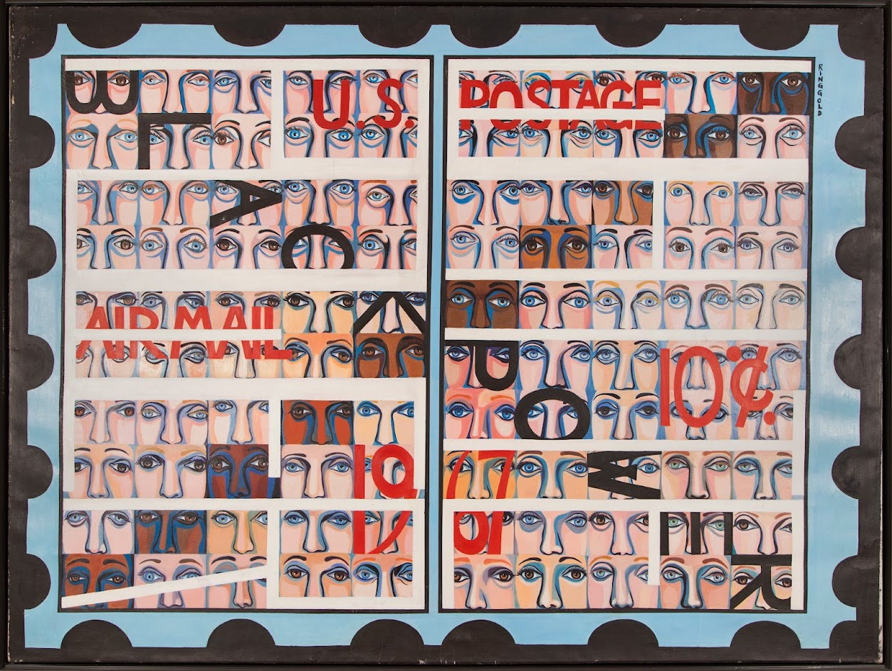 American People Series #19: U.S. Postage Stamp Commemorating the Advent of Black Power, Faith Ringgold, de Young Museum © 2022 Faith Ringgold / Artists Rights Society (ARS), New York, Courtesy ACA Galleries, New York.