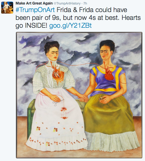 Good taste, refinement, scholarship, erudition, insight, and deep knowledge of art history. If these things are not important to you, then stay tuned for next week’s installment of @TrumpArtHistory’s top tweets…